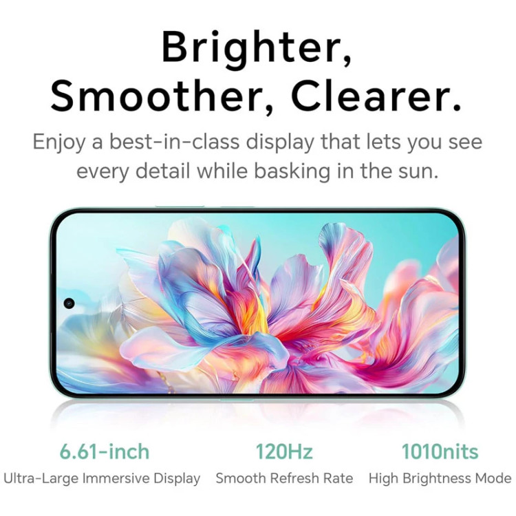 نمایشگر ۶.۶۱ اینچی دستگاه از نوع TFT LCD بوده و با نرخ نوسازی ۱۲۰ هرتز، تجربهای روان در اسکرول و اجرای محتوا فراهم میسازد. روشنایی بالا استفاده در فضای باز را آسان میکند، اما رزولوشن HD+ کمی از شفافیت تصویر کاسته است. در بخش سختافزار، تراشه Helio G81 Ultra در کنار رم ۶ یا ۸ گیگابایتی، برای انجام کارهای روزمره و حتی بازیهای سبک کافی است.